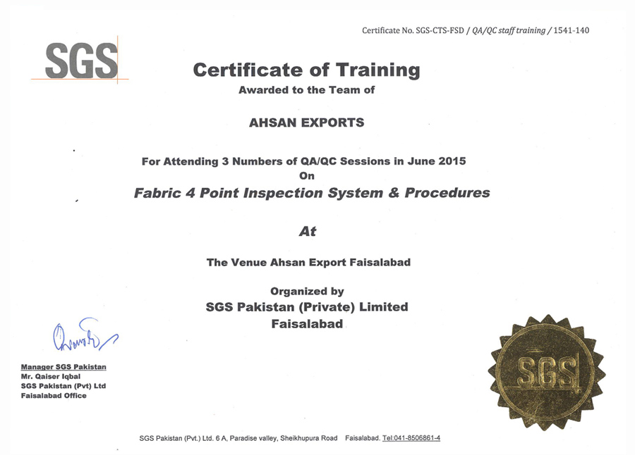 - SGS – Fabric 4 Point Inspection System and Procedures